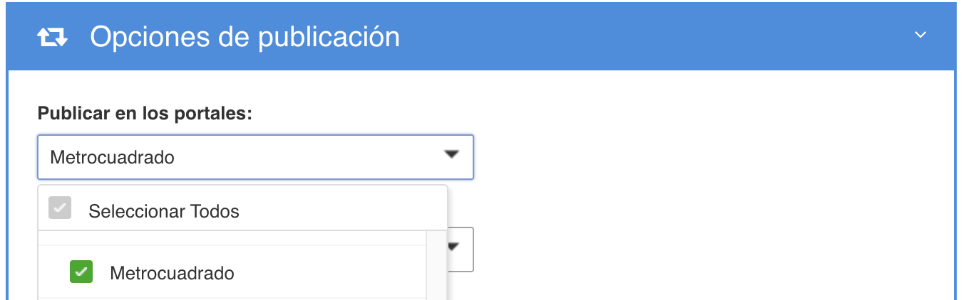 Si aún no tienes propiedades seleccionadas para enviar el portal debes ingresar a modificar cada una de propiedades y marcar la opción de publicación Metrocuadrado.