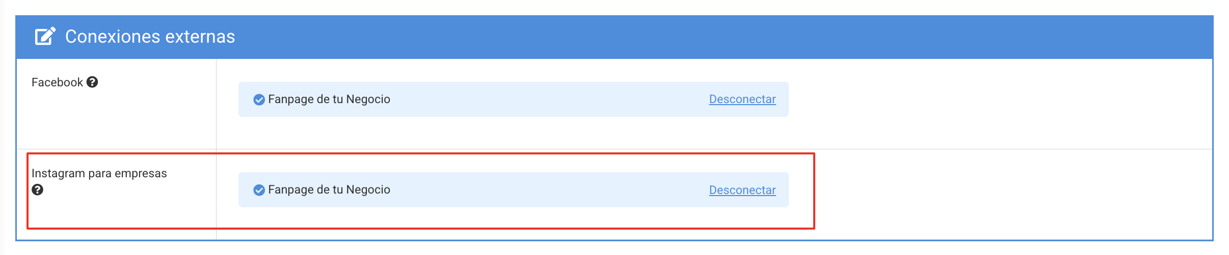 Compruebas que la conexión fue exitosa cuando se muestra de la siguiente manera con el nombre de tu Instagram